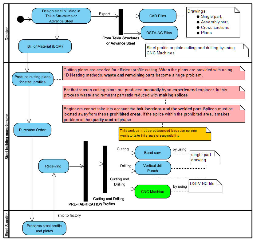 In the activity diagram above, small and medium size manufacturers who do not have CNC profile cutting and drilling machines are taken into consideration.