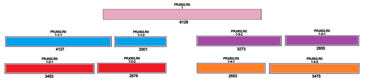 The red color indicates the single parts to which the splice has been existed. Where there are green prisms, a splice has been made.